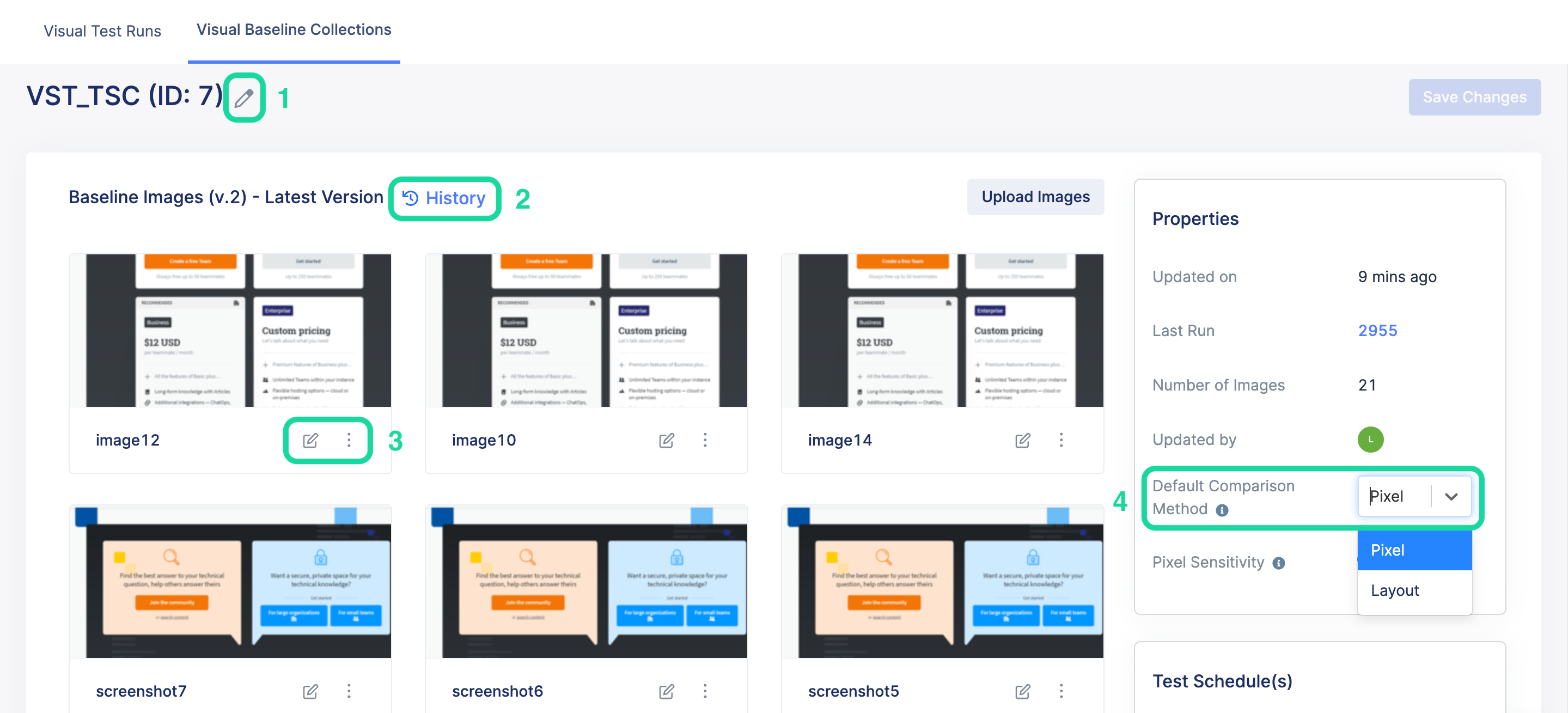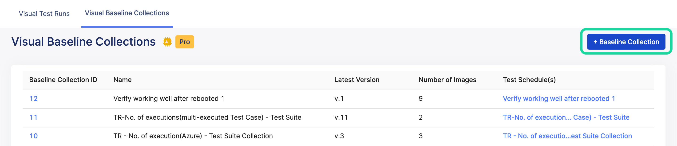 - If you schedule test runs in TestOps, you can select Visual Testing and choose Generate a new Baseline Collection. See: Schedule test runs.