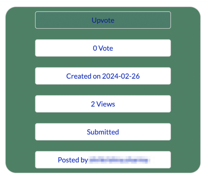 - Submitted: the Idea has been submitted and is available for voting by the community. The Katalon team may provide comments on trending open Ideas to gain more information from the community and/or to indicate whether the Idea might be considered for a release.