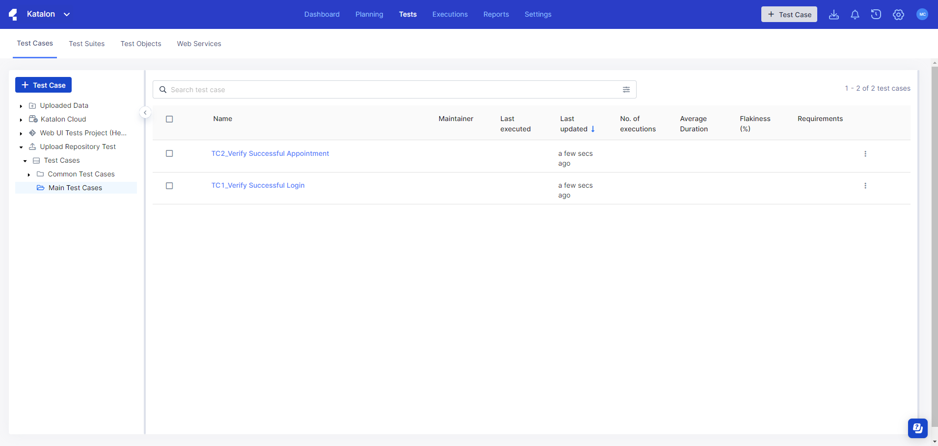 You can upload tests from Katalon Studio directly to Katalon TestOps via a ZIP file upload. This makes it easy to leverage features like scheduling or executing test runs and viewing reports without having to configure a git repository.