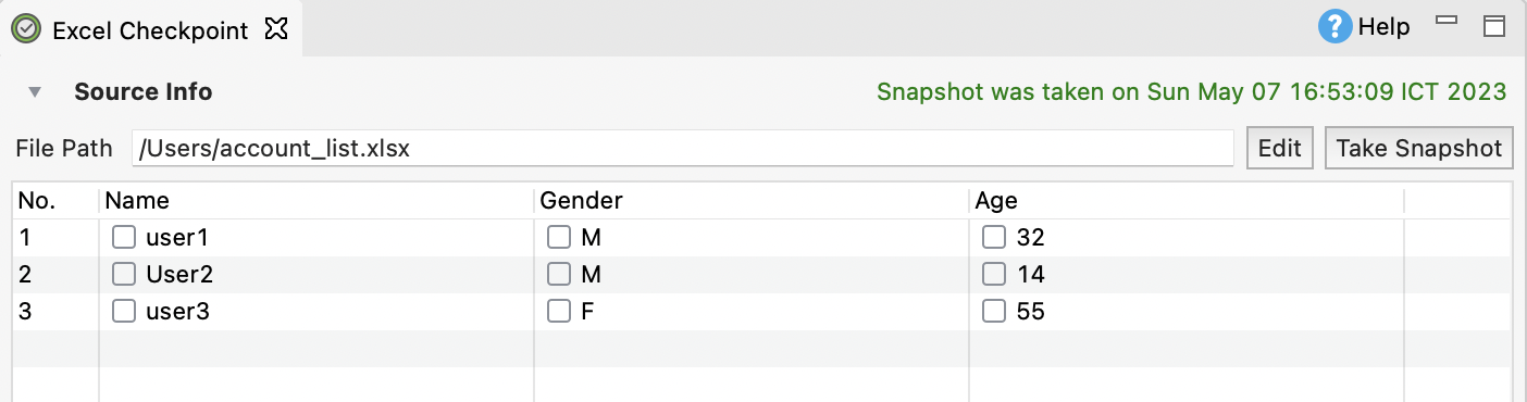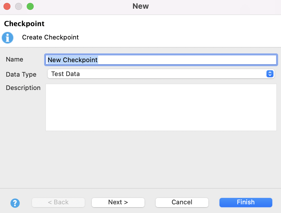 - In the displayed New Checkpoint dialog, enter the checkpoint name and select Excel File as Data Type.