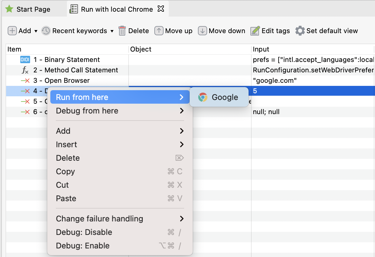 - An active Katalon Studio Enterprise license is mandatory for using the Debug: Run from here and Debug from here features.