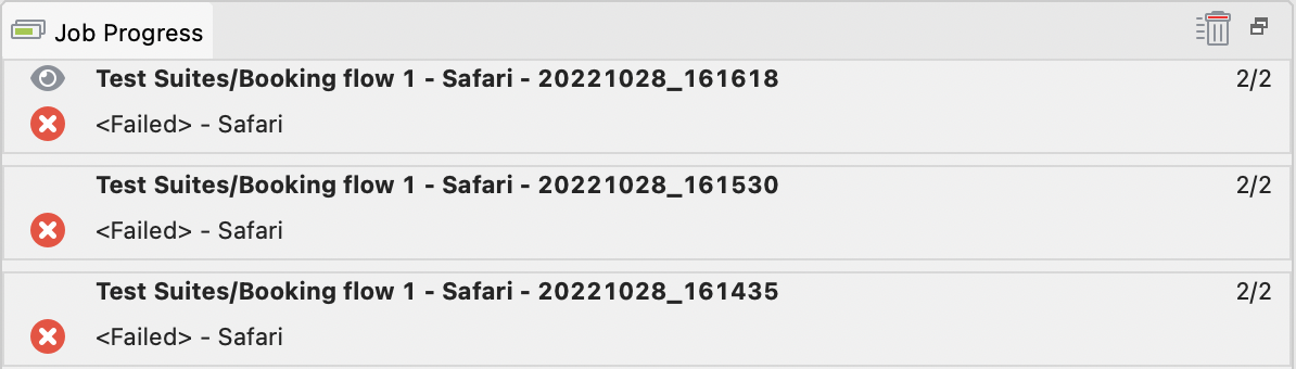 The Job Progress is triggered automatically to show the progress while your test suite is being executed.
