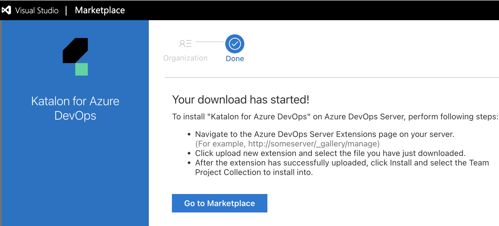 You have installed the Katalon for Azure DevOps from the Visual Studio Marketplace.