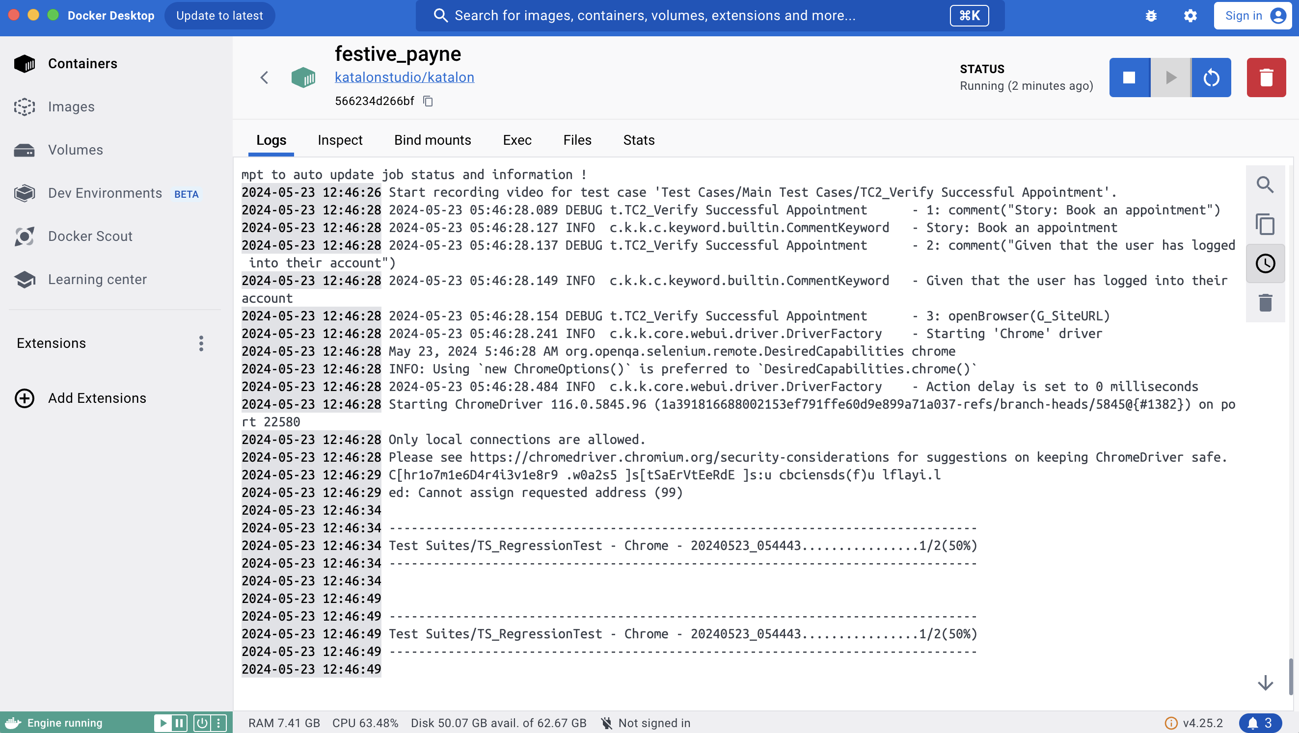Your Katalon project will run with the Katalon Studio Docker image. Katalon Studio and Katalon Runtime Engine do not need to be installed on your local machine.