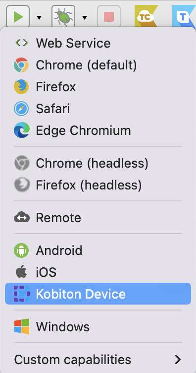 Note:To dynamically change Kobiton devices in console mode, see Kobiton integration arguments.