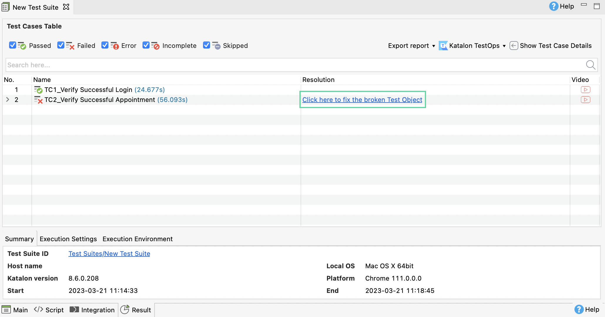 Fix broken web test objects with Time Capsule in Katalon Studio