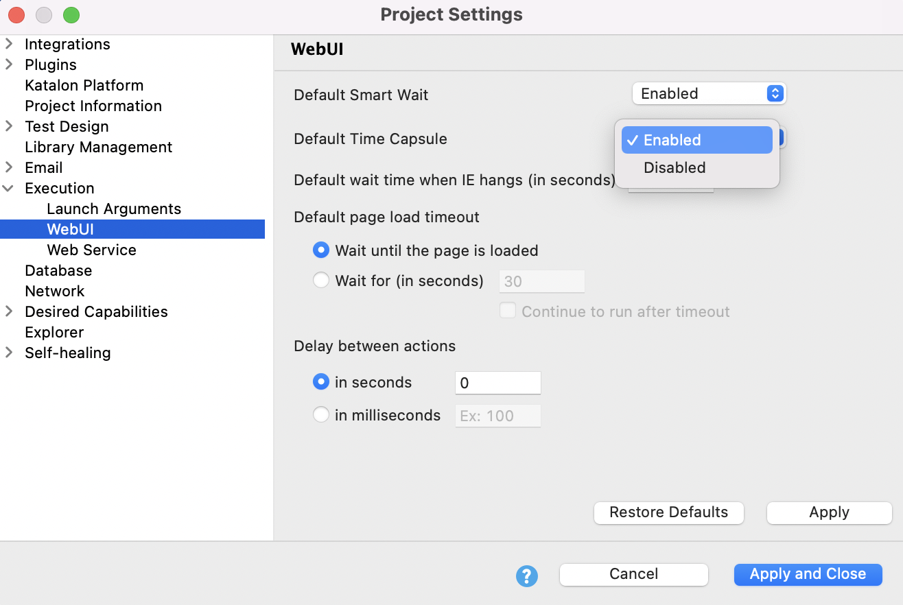 This document shows you how to enable and use the Time Capsule feature in a failed test execution.