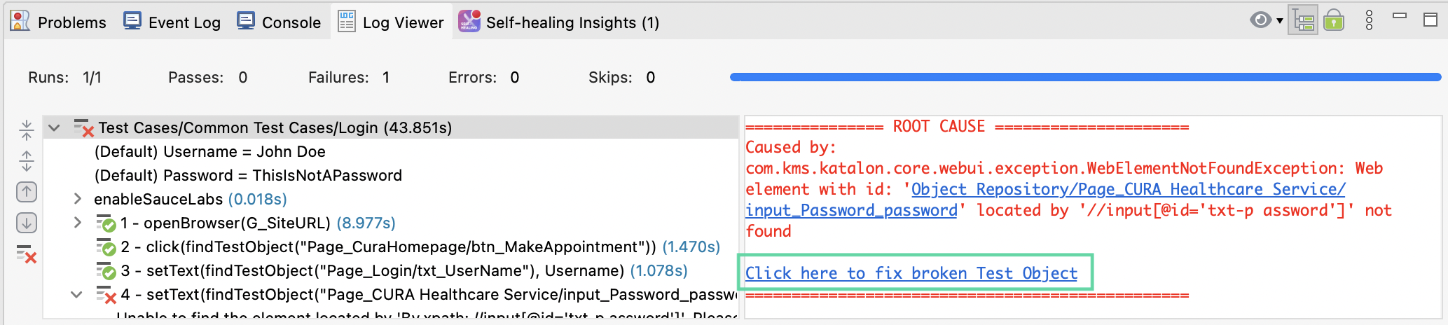 Katalon Studio supports the Time Capsule feature to restore the state of your AUT when a test failed due to broken locators. You can generate a Time Capsule to fix broken web test objects that are not automatically fixed by the Self-healing feature.