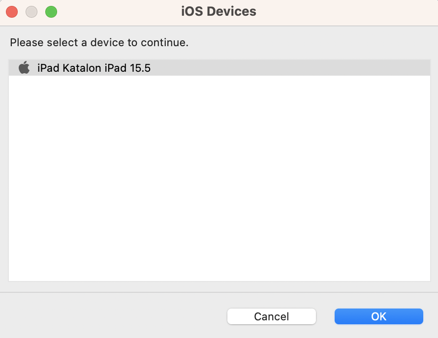 - In the iOS Devices dialog, select the real iOS device you want to test then click OK.