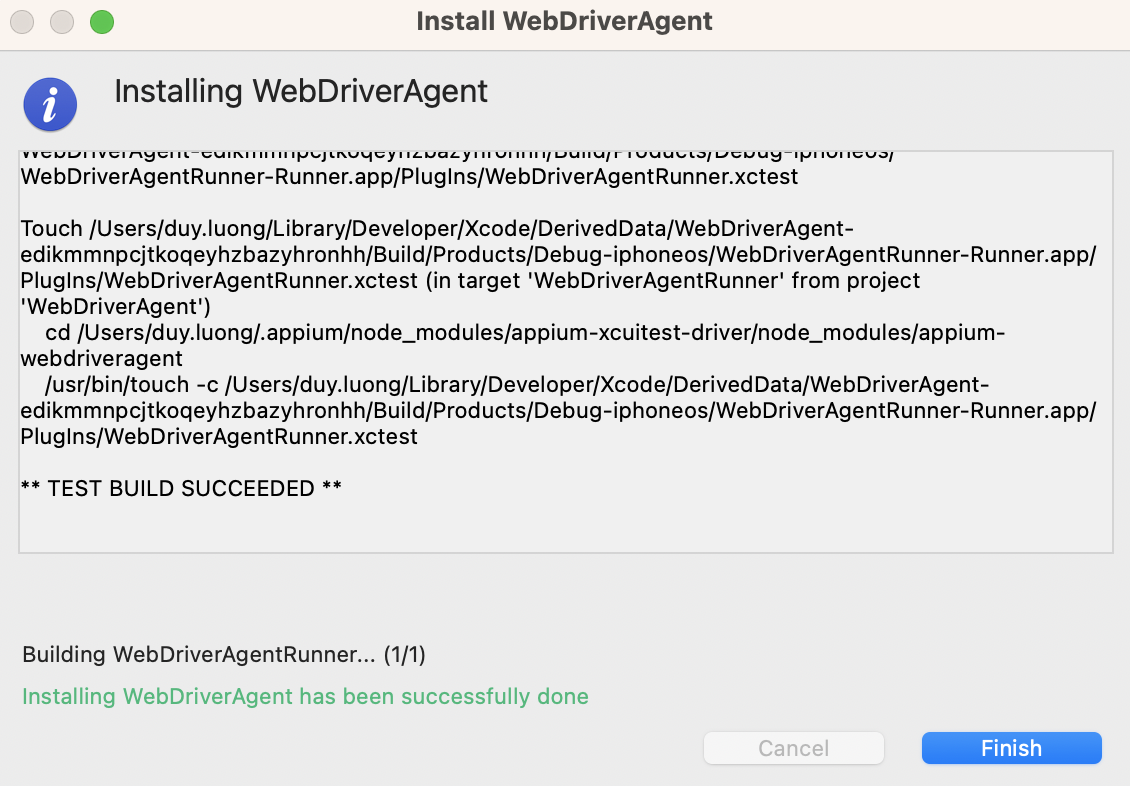 You have successfully manually installed the WebDriverAgent.