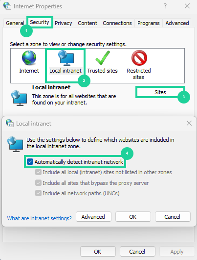 4. Enable Automatically detect intranet network, then click OK.