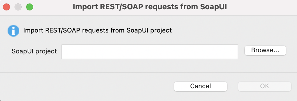 In the dialog that displays, browse to your SoapUI project and click OK.