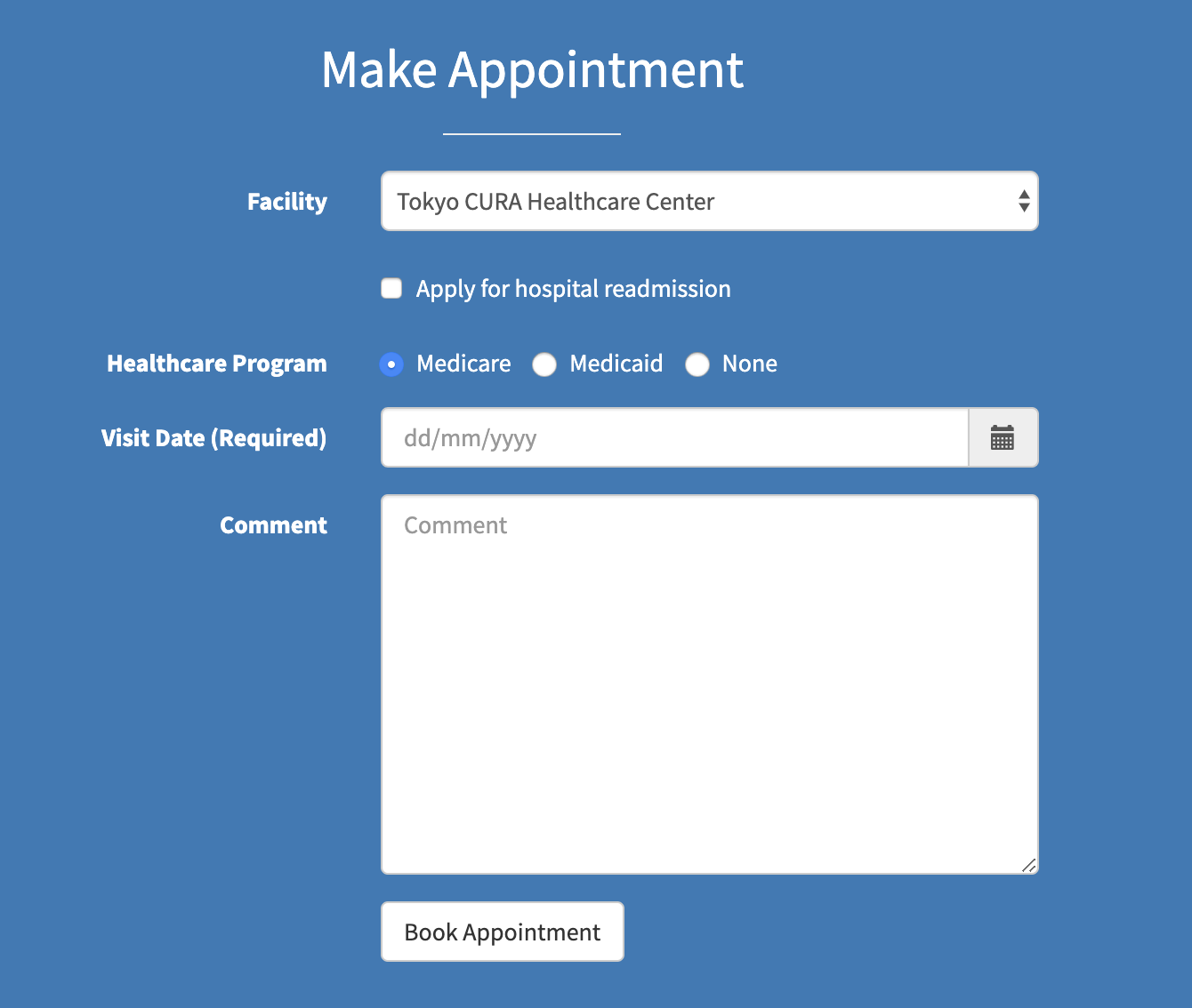 There are some cases in which you can identify an object's locator only when it's runtime. In other words, the exact locator of the intended object cannot be specified beforehand in test scripts. In the Cura Healthcare Center appointment web page, for instance, there are three options of the healthcare program, and the selected one is only known with passing data during execution.