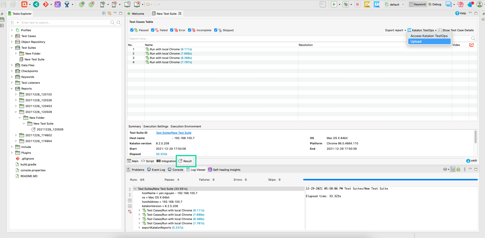 Upload test results from Katalon Studio to Katalon TestOps manually