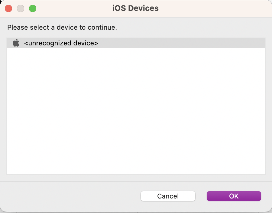Try reconnecting the device and click Trust for the connected machine.