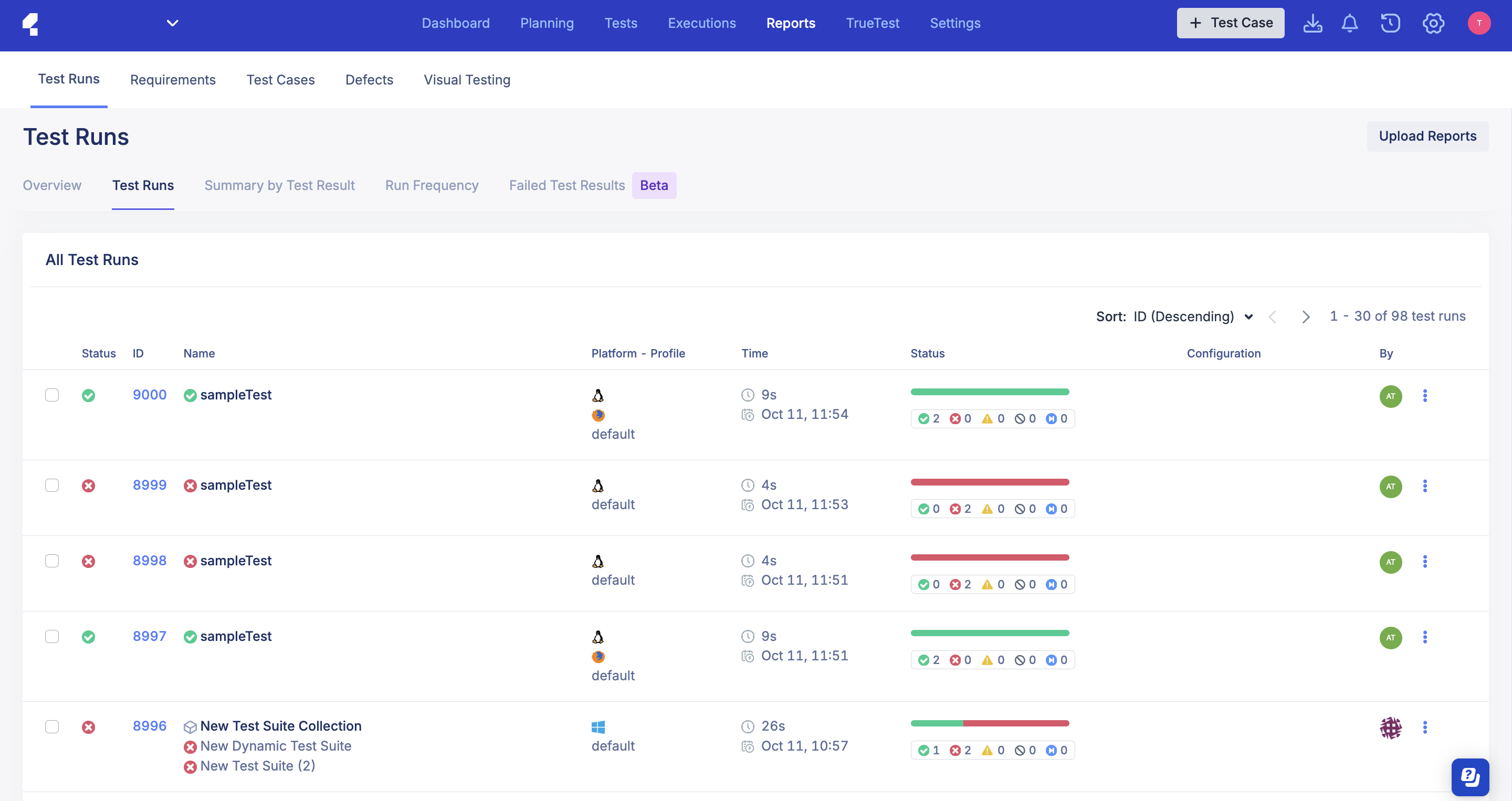 - In TestOps, go to your project > Reports.
