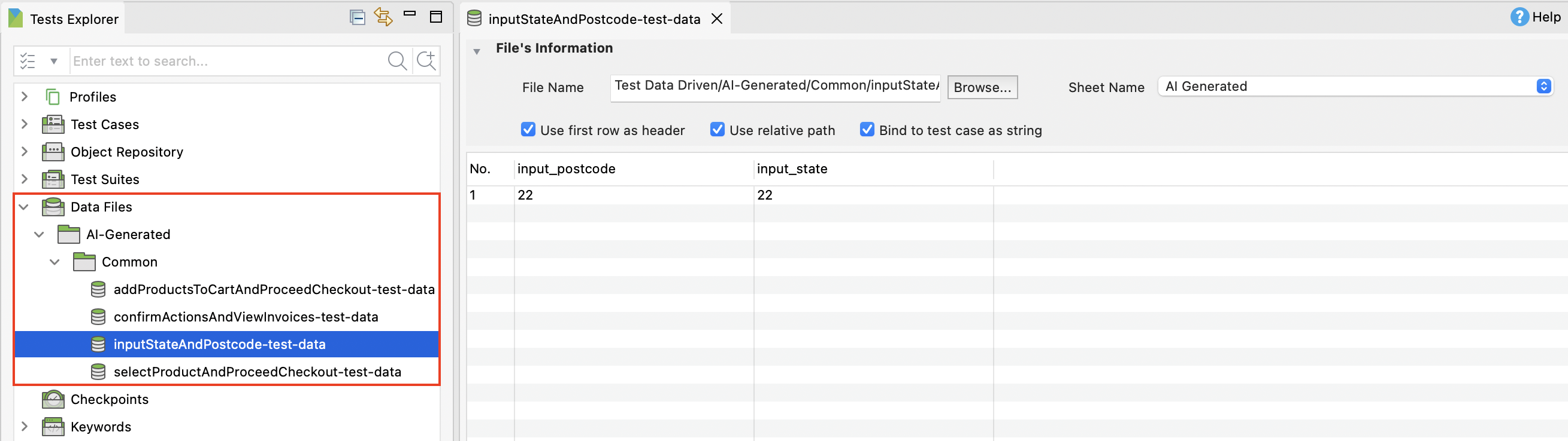 - Import the file back to Katalon Studio as a new data file or override the existing one. For instruction, see Create an Excel data file.